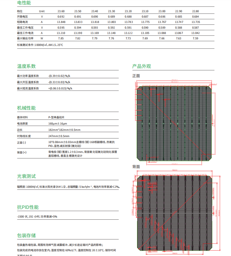 M10 10BB Mono Solar Cell with A grade High Efficiency, 182*182mm and 182*183.75mm available