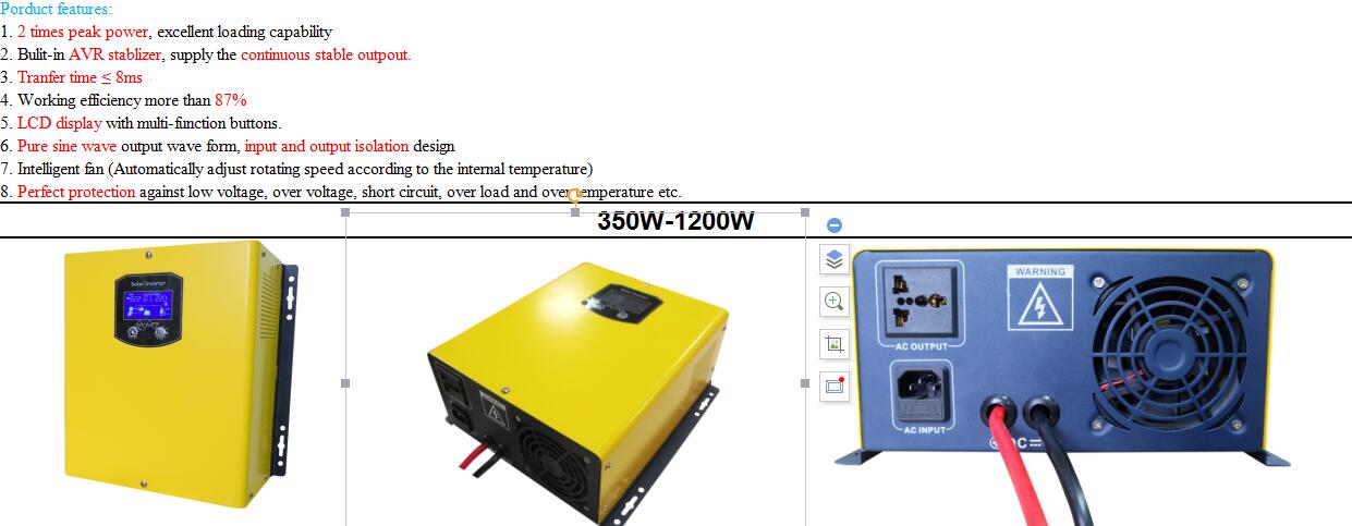 1. 350W-1200W Low frequency pure sine wave inverter (220V)